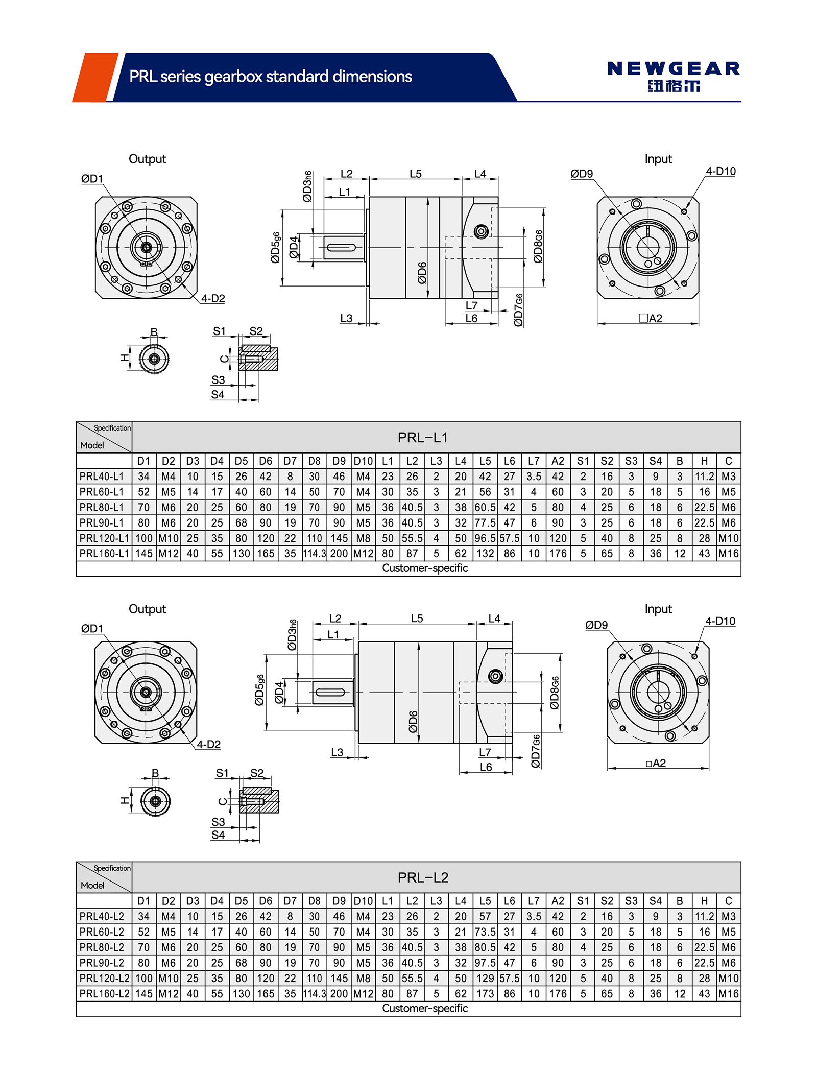 | المعايير الفنية | سلسلة النماذج | PRL40 | PRL60 | PRL80 | PRL90 | PRL120 | PRL160 | ||